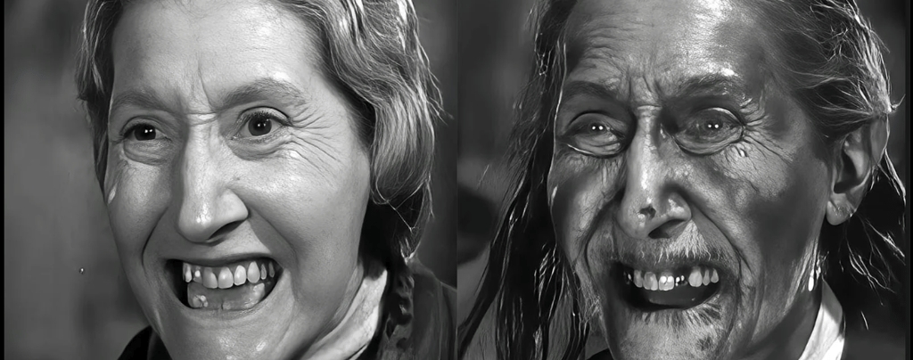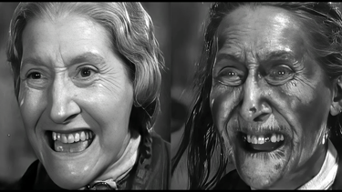 Otro caso fascinante es la transformación de Elspeth Dudgeon en Sh! The Octopus. Aquí, el efecto se basó en el principio inverso: un maquillaje elaborado con colores que coincidían con la sensibilidad del negativo, haciendo que ciertos rasgos parecieran invisibles bajo una iluminación y filtro concretos.